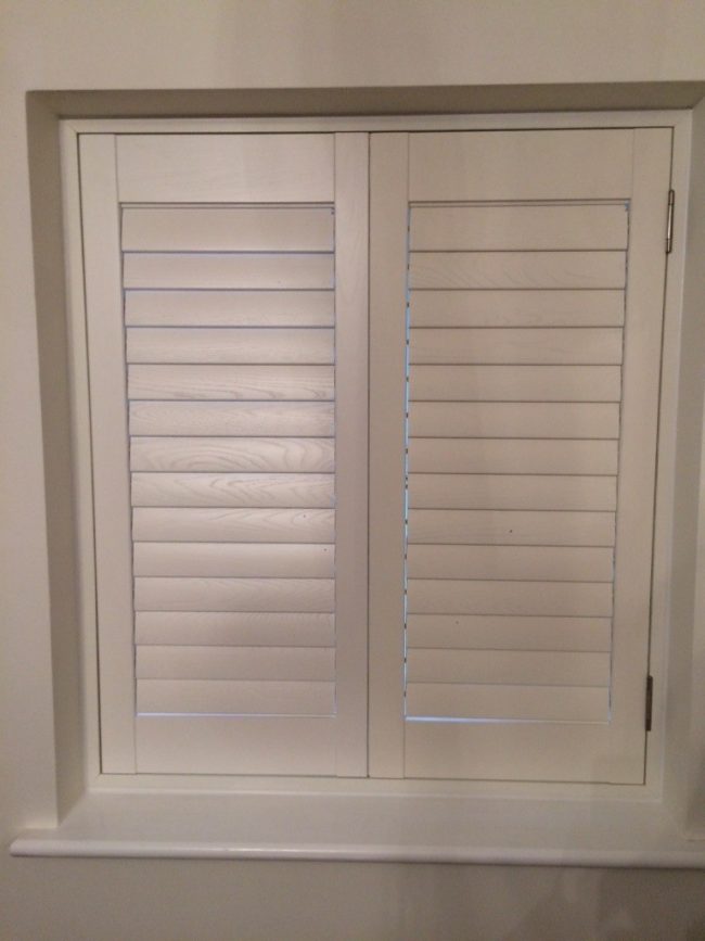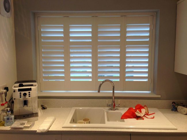 A clean finish in this kitchen with white, bi-folding shutters. We like the look of this smaller window with our larger slats – what do you think?
