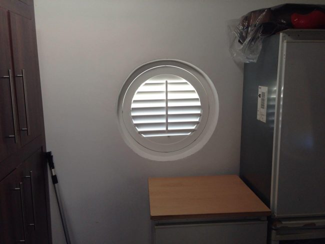 A larger circular window in Henbury, with hidden control rods & central hinges to provide simple access to the window!