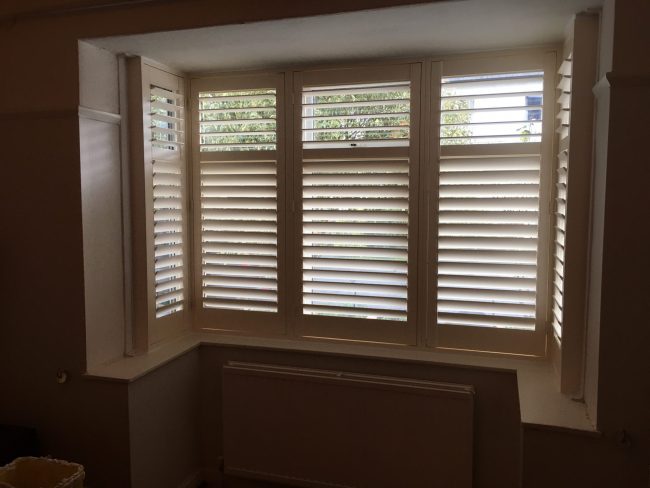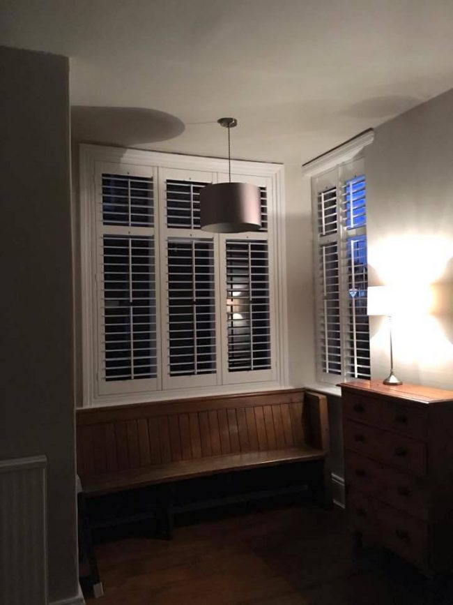 A very wide box bay window fitted with shutters featuring a concealed split, for excellent flexibly in terms of light 🔆 & privacy 🔒