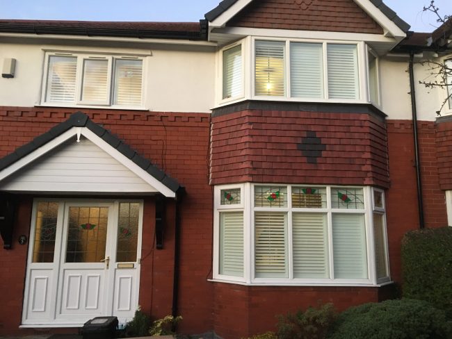 Now the clocks have gone back it’s going to be dark before we finish our installs each day… 🌚 This property in Handforth, Wilmslow, had 1 flat window & 2 L-Shape bay windows at the front of the house fitted with shutters.