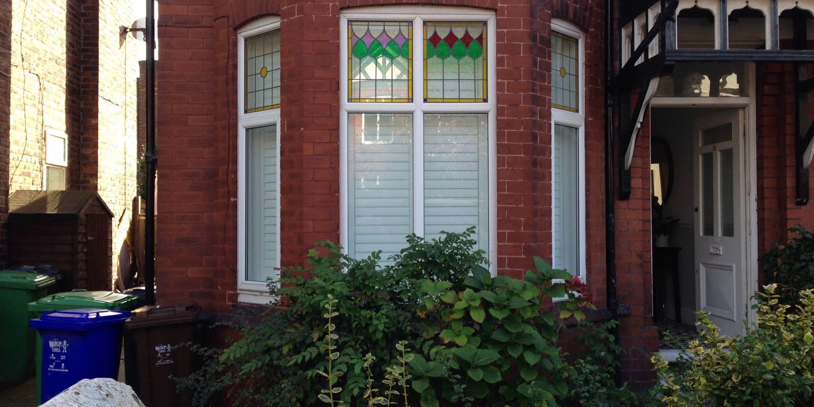 Normally people with stained glass windows opt for cafรฉ style shutters, but these full height shutters look just as good ๐ก