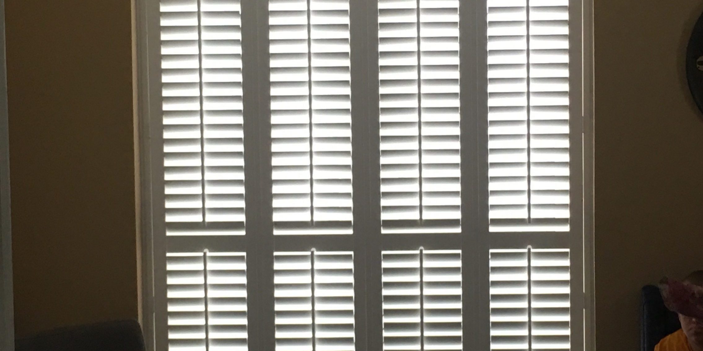 Check out one of our plantation shutter installations from today in Marple, Stockport – Hardwood Poplar patio door & standard window shutters
