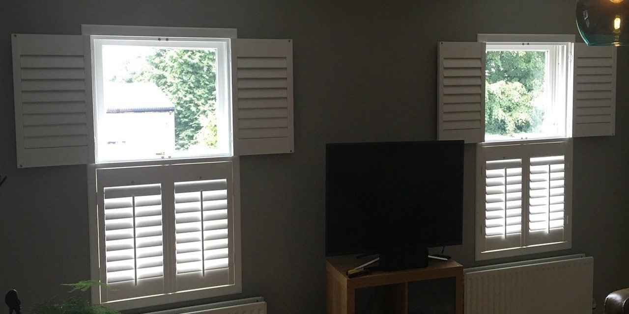 Tier on Tier Shutters throughout for this property in Macclesfield – Another perfect example of how well white shutters and grey walls work together π