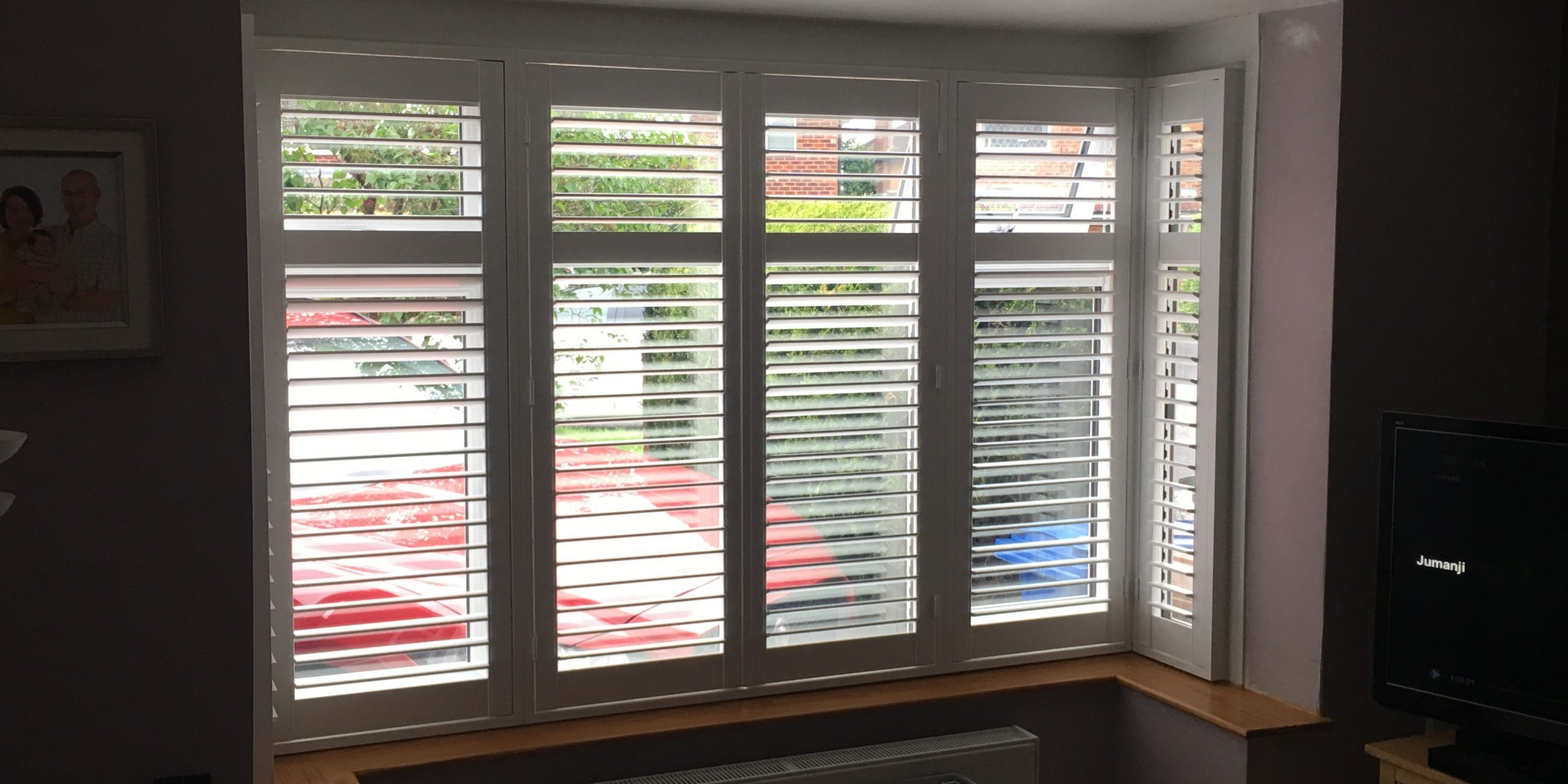 Another happy customer in Bramhall, Cheshire. Two Box Bay Windows installed with Real Hardwood Plantation Shutters.